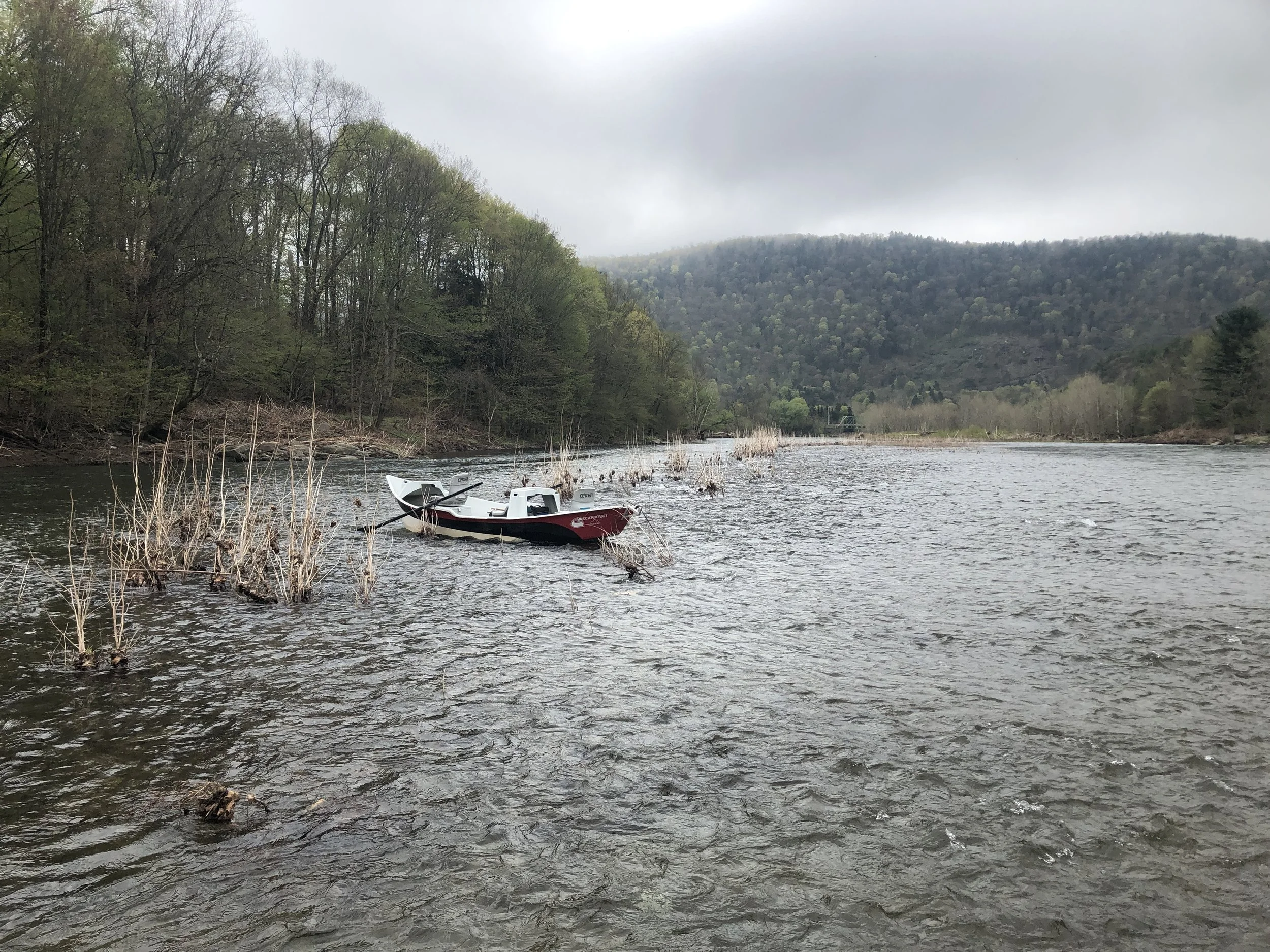 The boat fishing has been excellent under these flows. The fish tend to eat better with less vulnerability within the high water and also seem to be less likely to spook upon anchor drop — meaning closer shots and some of the “easiest” dry fly fishing of the year. Although the fish have been taken larger Catskill traditional style dries — our guides have been having most of our success on snowshoe emergers.